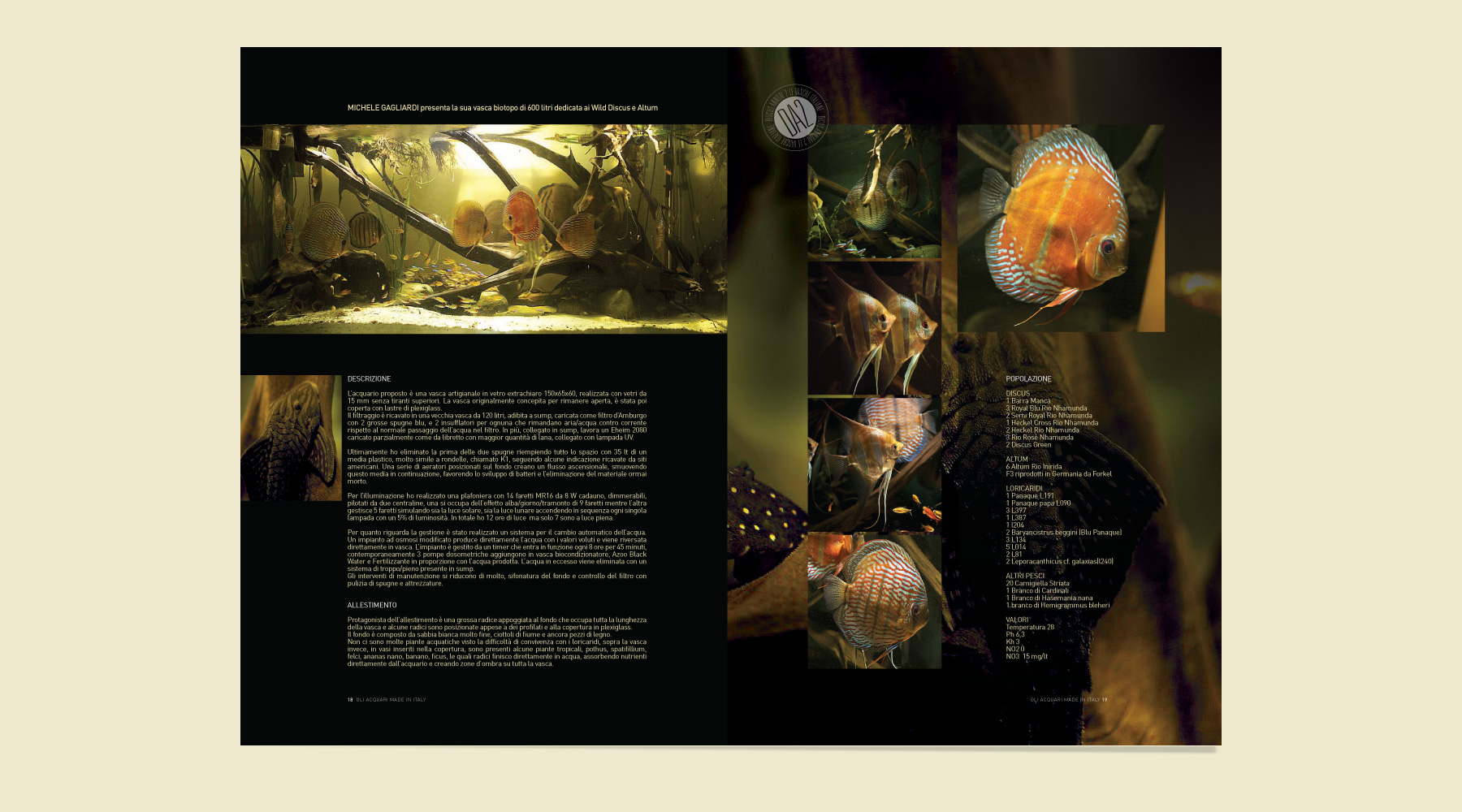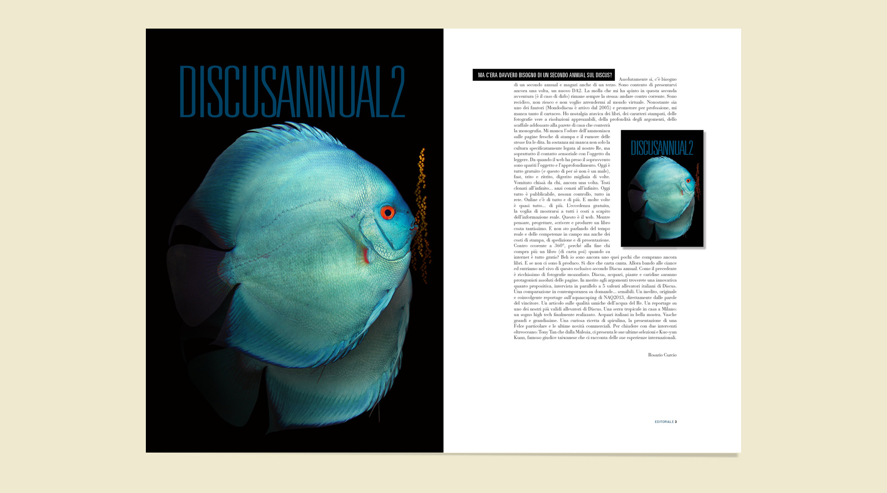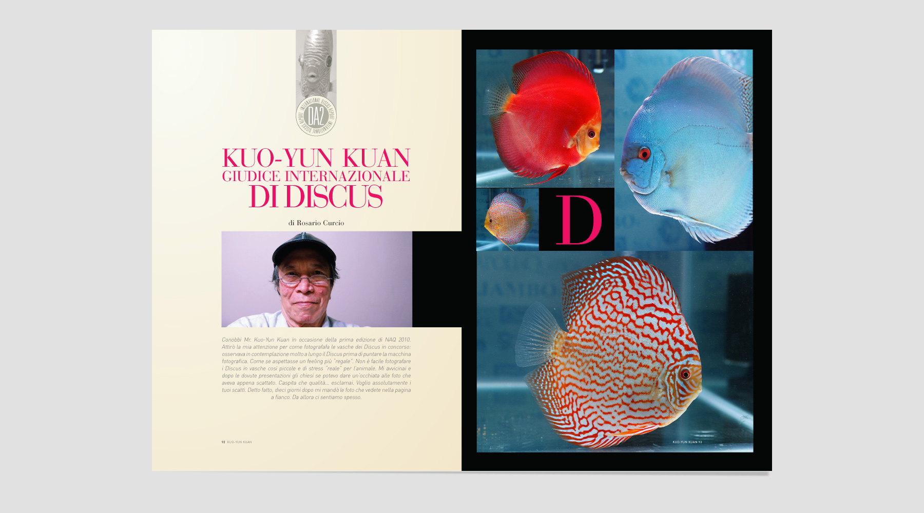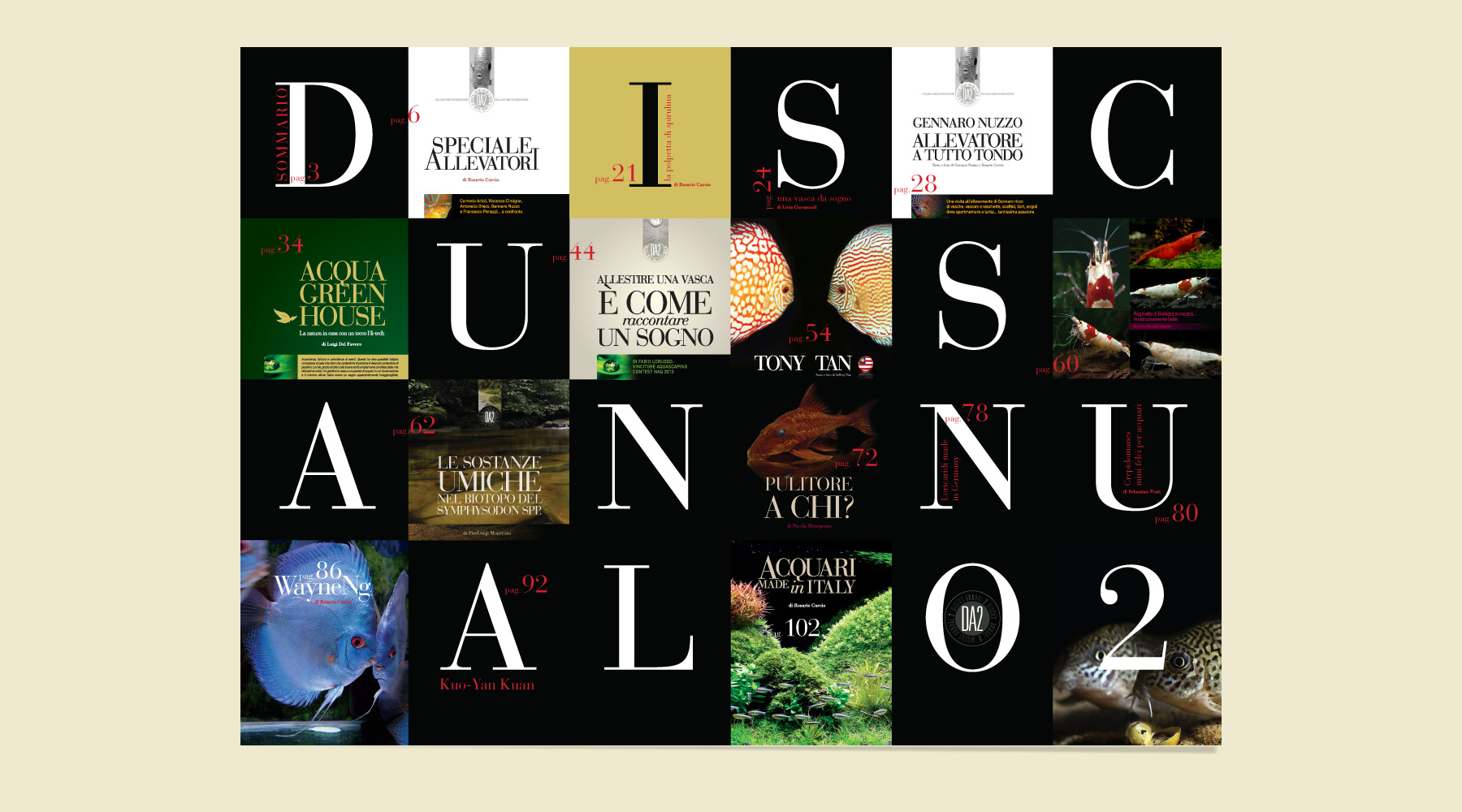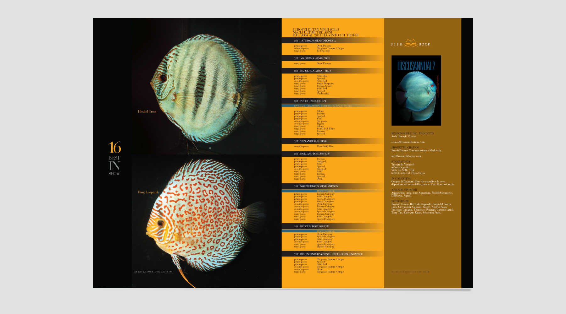 Discus Annual 2: un progetto editoriale all’insegna del rigore formale, della classicità e dell’istituzionalità. Inusuale visto il settore più orientato al consumer. Un impianto grafico editoriale abbastanza complesso dove ogni articolo è diverso dall’altro. L’impianto è libero ed è a più colonne, le pagine sono di diversi colori dal bianco ai colori pastello fino al colore nero molto profondo praticamente quadricromia al 100%. la lettura è affidata a un font senza tempo: Bauer Bodoni.